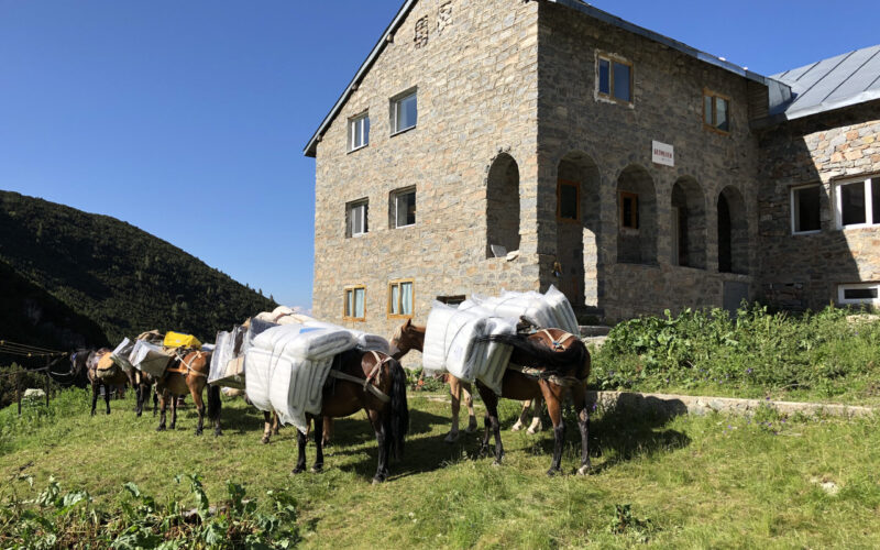 Всички провизии и продукти се качват на гръб, както и печки, хладилници и матраци
